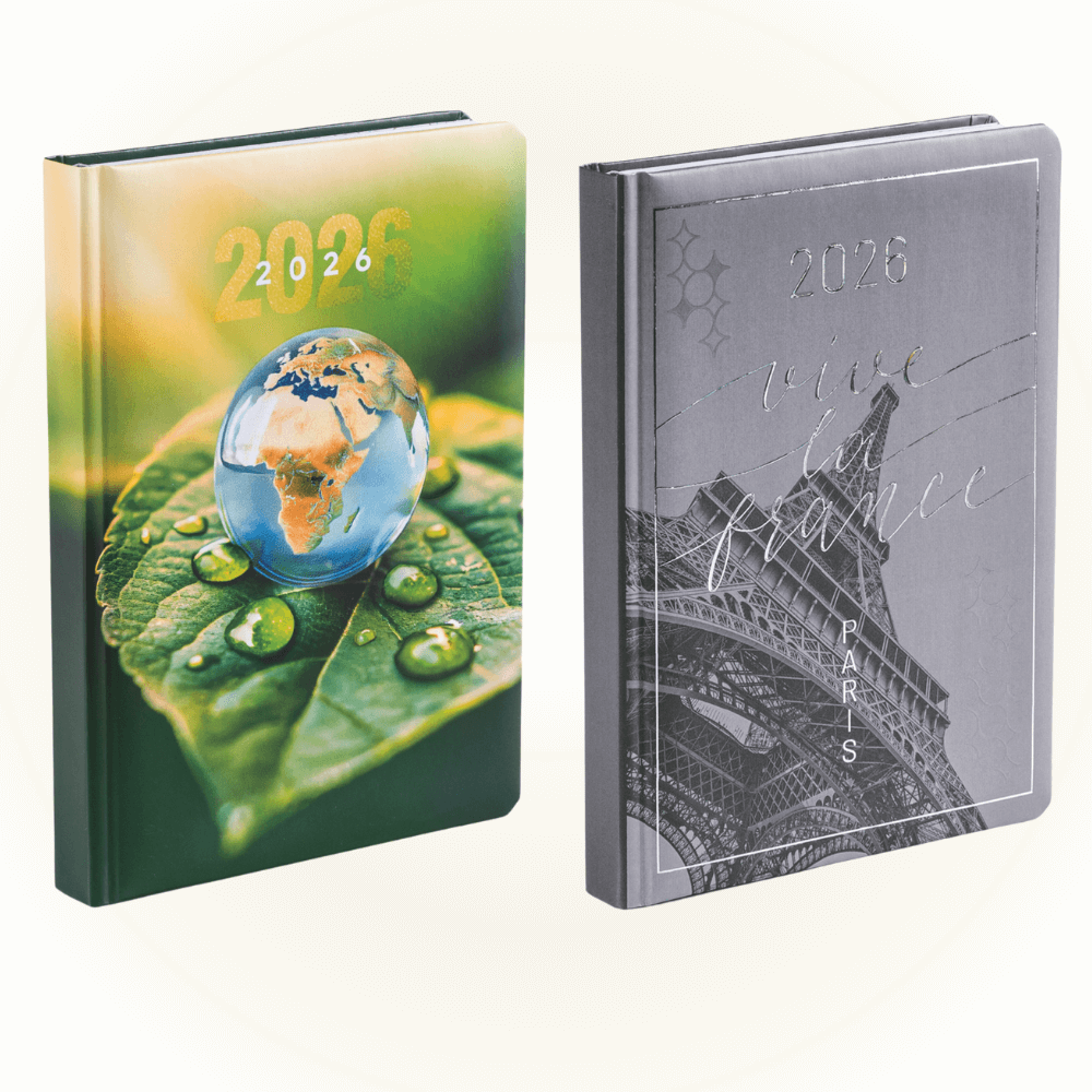 Nasze ekologiczne okładki, wspierające zrównoważony rozwój, powstają z recyklingu, posiadając certyfikat FSC®. Wybierz kalendarz z troską o naturę.